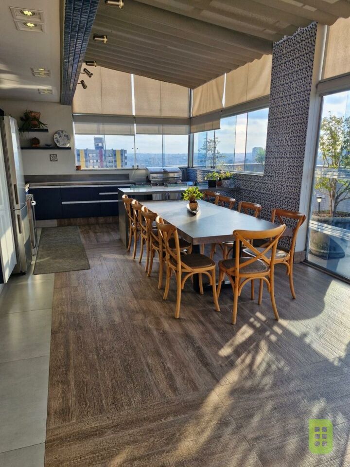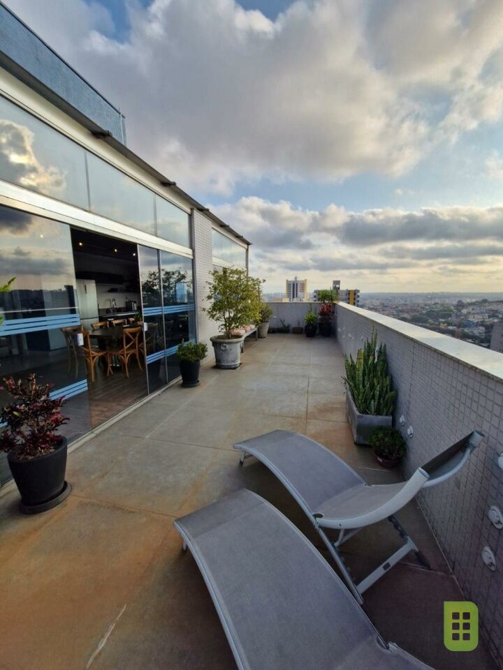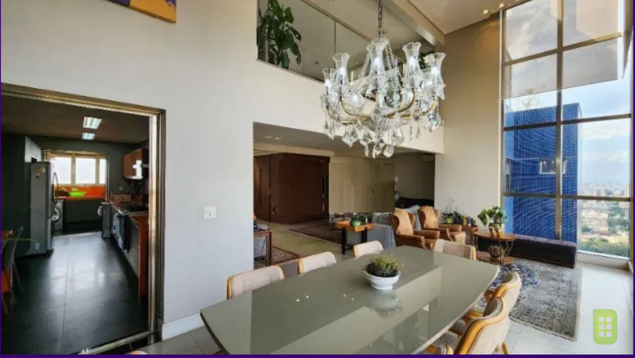 Piso superior: hall social e serviço com elevador, lavabo, escritório (opção para a 4ª suíte), lounge, espaço gourmet com churrasqueira a gás, terraço com espaço para jacuzzi. 6 vagas de garagem com deposito.