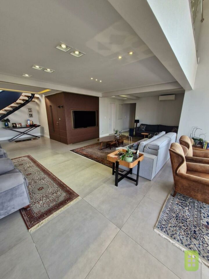Piso inferior com 03 suítes (atualmente está com 2 suítes com banheiro senhor/senhora, sendo reversível para o 3ª dormitório), sala 3 ambientes com pé direito duplo, lavabo, cozinha planejada e área de serviço com banheiro.