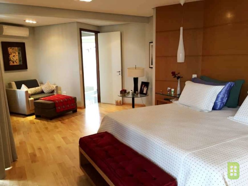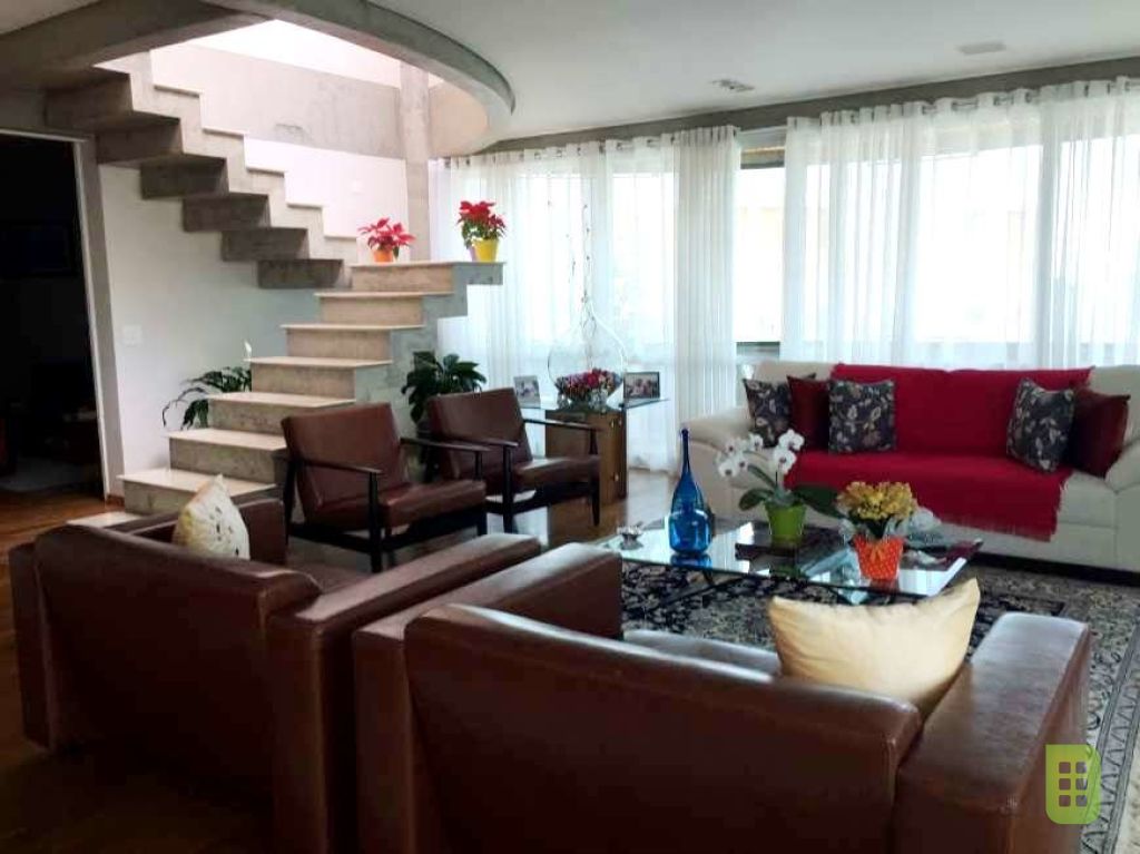 Cobertura no melhor local do Bairro Jardim! Linda! Toda Mobiliada! Localização privilegiada, ao lado do Pão de Açúcar, farmácias, restaurantes, 04 suites, sendo 01 master com 60m², 2 sacadas; amplo closet e wc (Sr e Sra), e 01 suíte revertida em escritório, sala ampla 03 ambientes com varanda, sala de almoço, lareira, lavabo, cozinha planejada, área de serviço, despensa com wc. No piso superior possui espaço gourmet com churrasqueira, living e um amplo espaço livre com paisagismo diferenciado. 04 vagas, 412 m2 au. Obs: Estuda permuta por apartamento de menor valor. Agende sua Visita