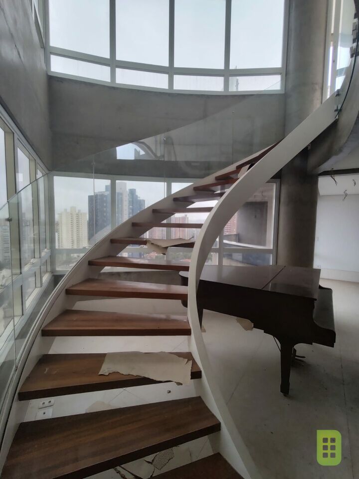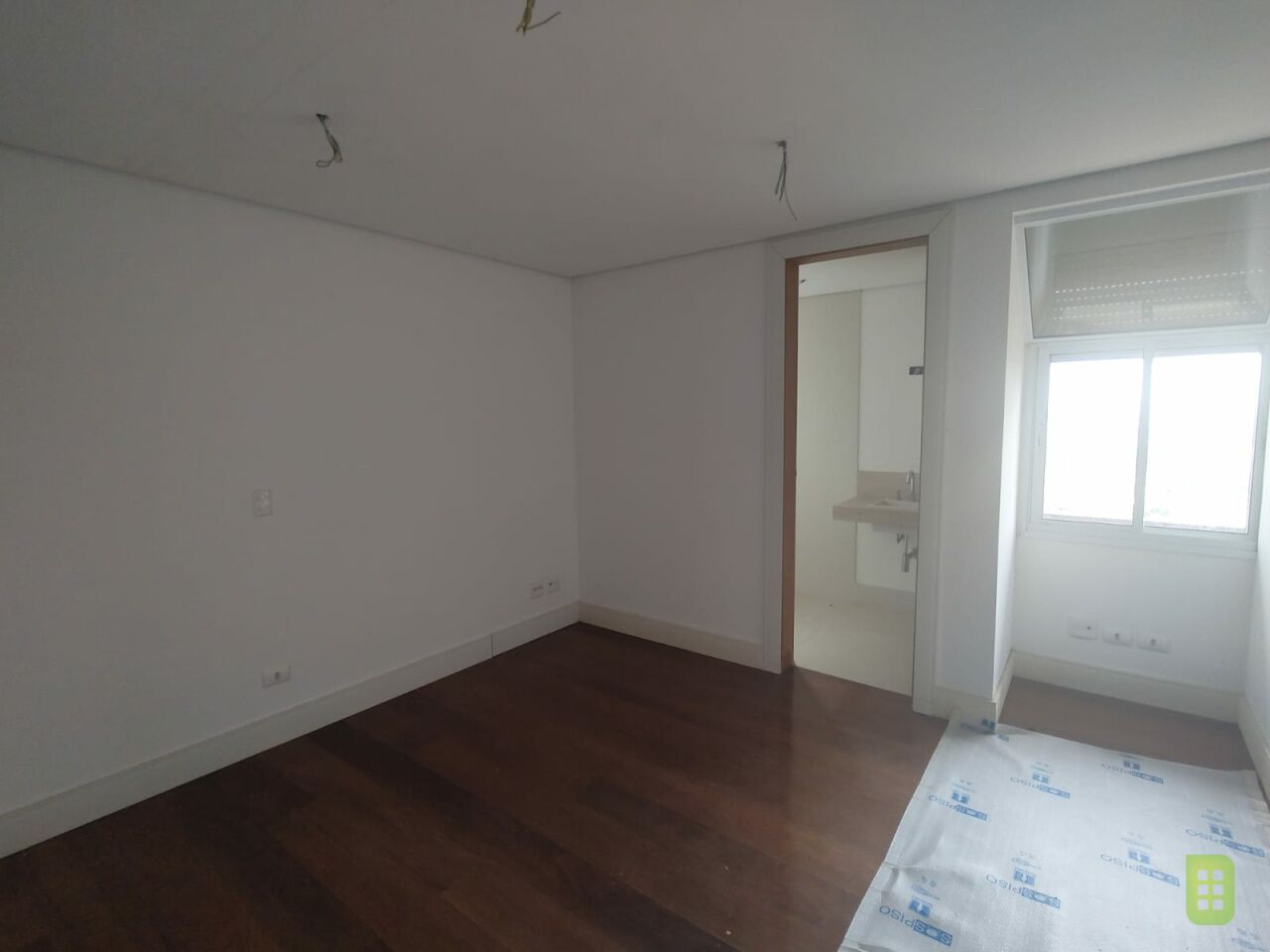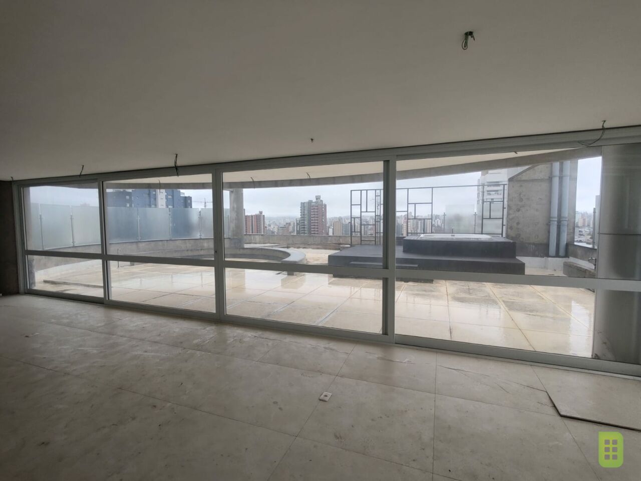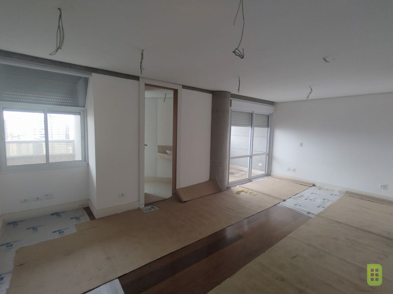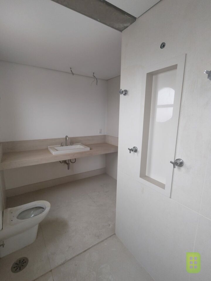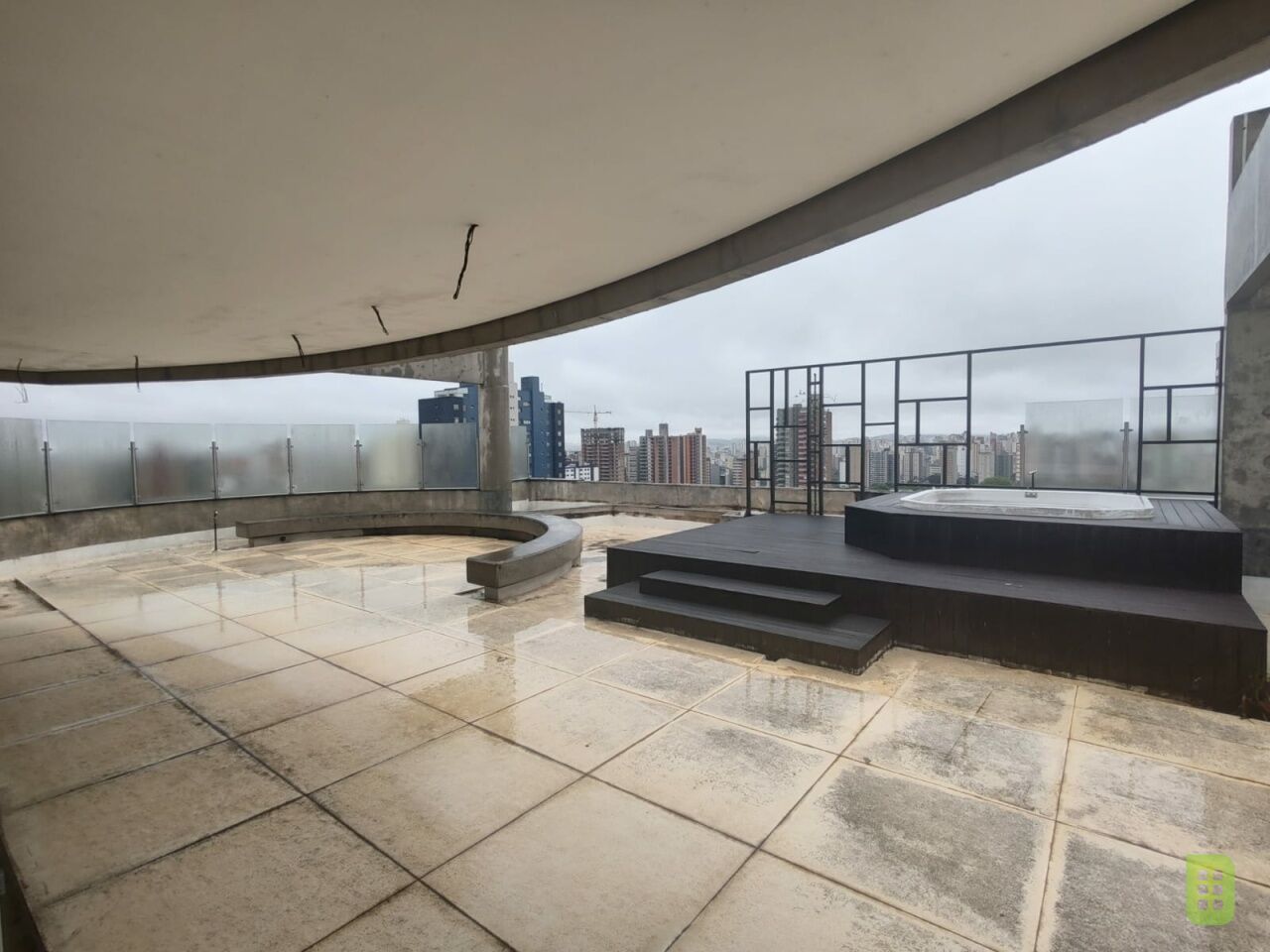 São 460m² divididos em 03 suítes com sacada, sendo 01 suíte master com 02 banheiros e closet, saia 04 ambientes com sacada, lavabo, cozinha independente integrada com a varanda gourmet (com churrasqueira á carvão e fechamento em vidro), dependência de empregada com banheiro e área de serviço. Ampla cobertura com sala de estar, lavabo e área descoberta com hidromassagem, deck e jardim. 06 vagas de garagem.