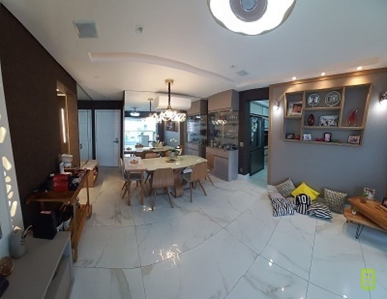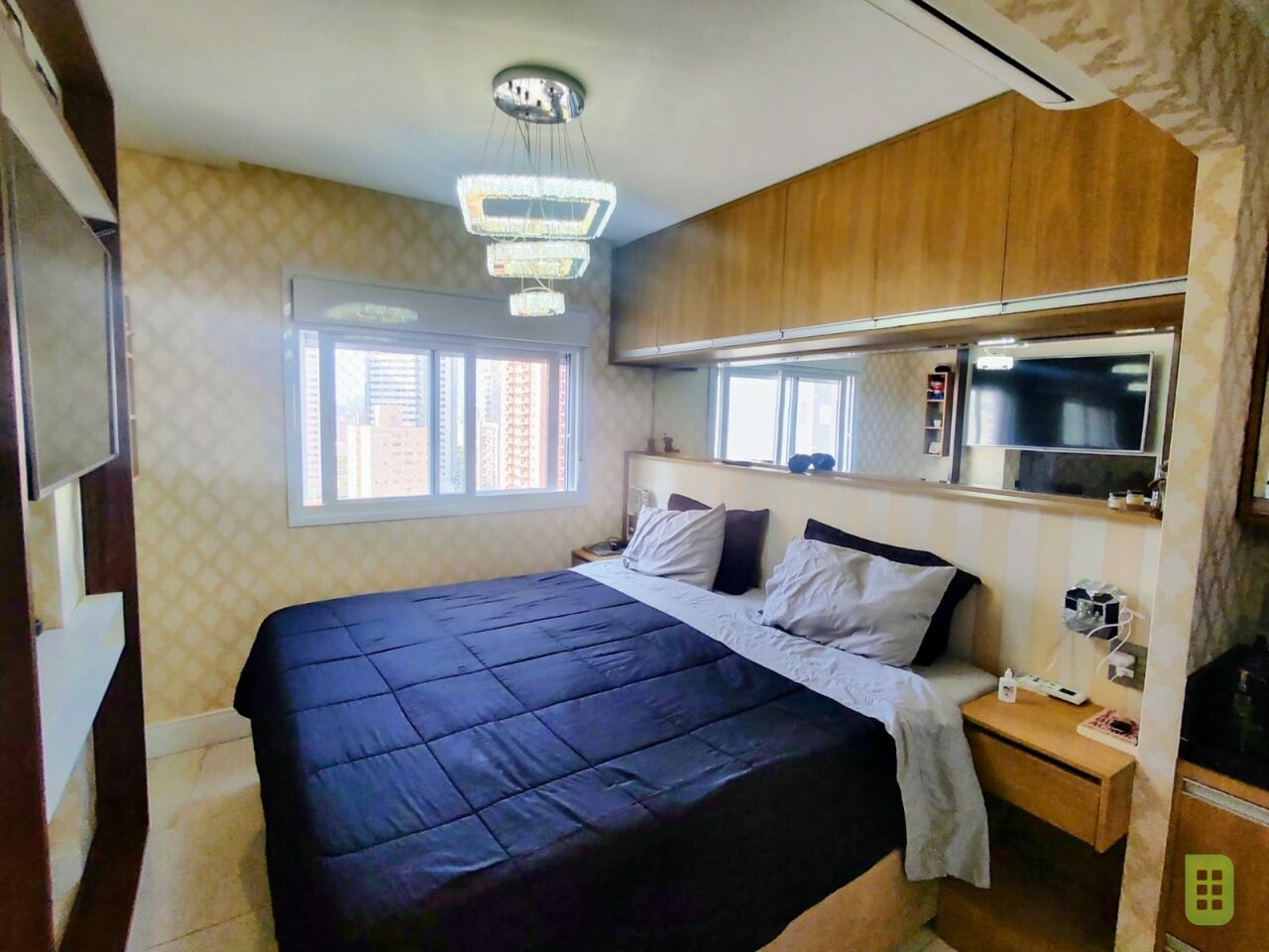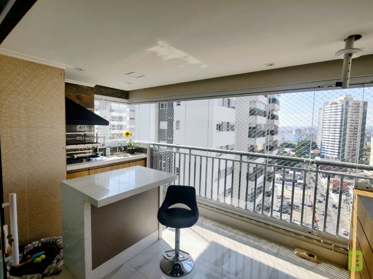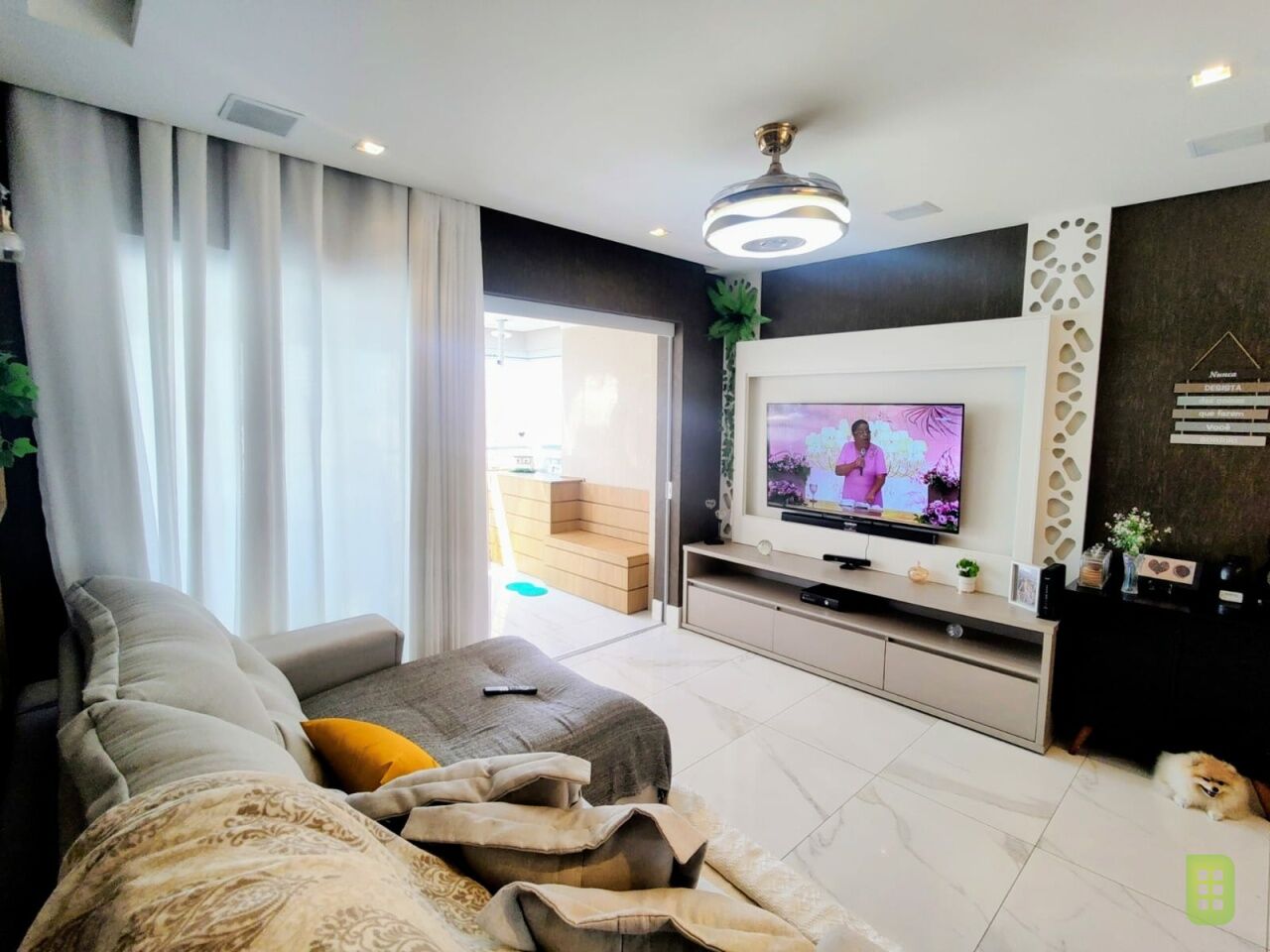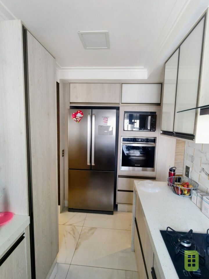 são 03 dormitórios com armários embutidos, sendo 02 suítes, 01 suíte master com closet e escritório, sala 02 ambientes integrada com a sacada gourmet (com churrasqueira á gás e fechamento em vidro), lavabo, cozinha independente planejada e área de serviço. 02 vagas de garagem com depósito. 103m² - Lazer completo!