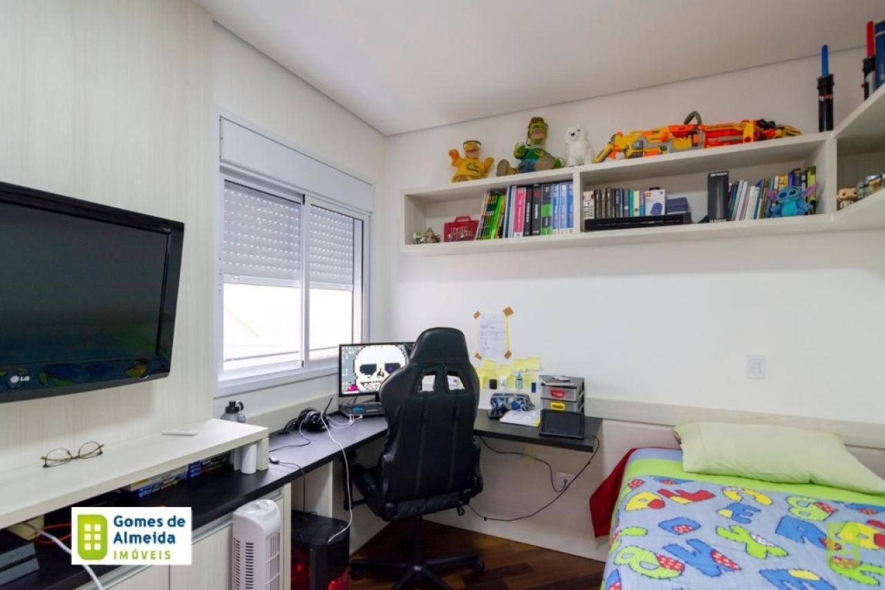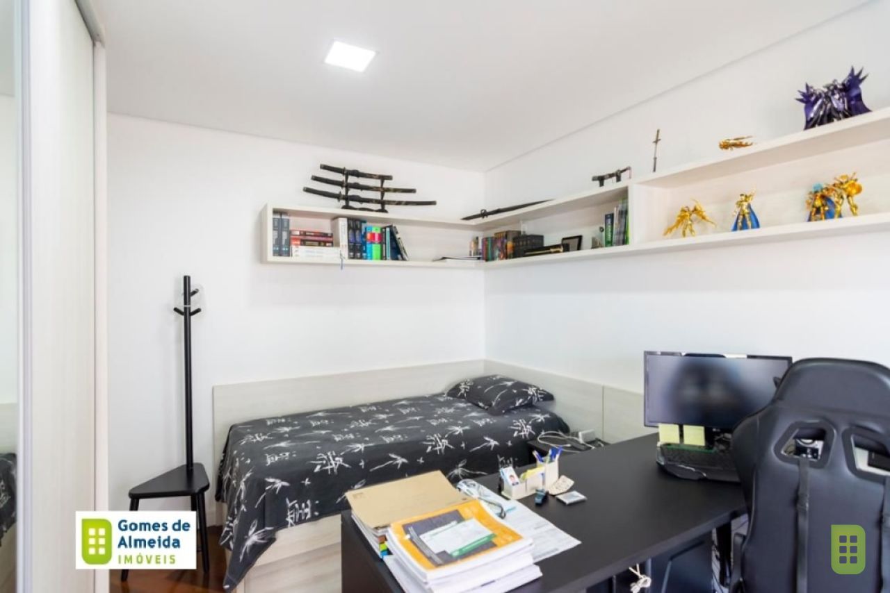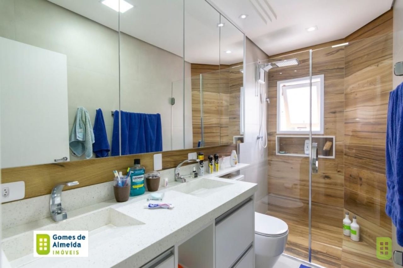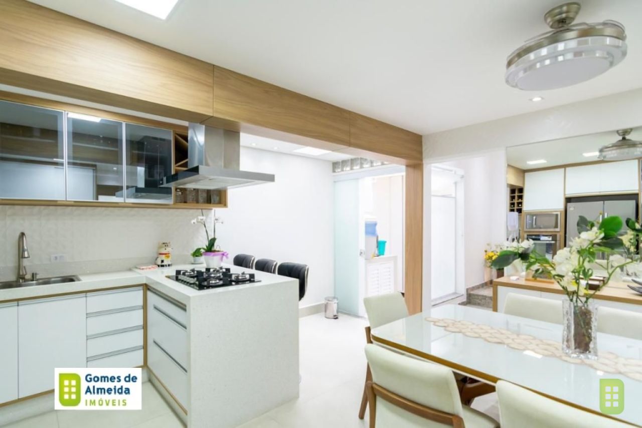 São 03 dormitórios com armários embutidos, sendo 01 suíte master com closet e 01 dormitório com sacada, banheiro social, sala 02 ambientes com lavabo, cozinha gourmet americana planejada e área de serviço com teto retrátil. 03 vagas. 140m²