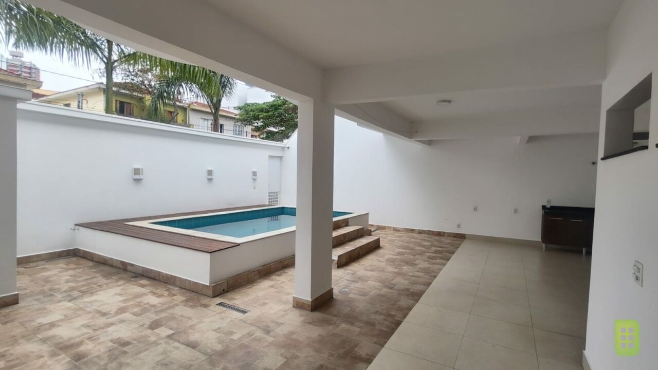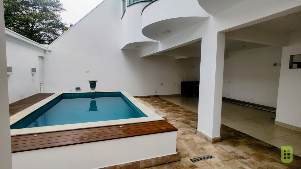 Pavimento Inferior: Sala Intima, lavabo, escritório, área de serviço, ampla área gourmet com banheiro, depósito, piscina, casa de máquinas e quintal. 03 vagas. 255m²