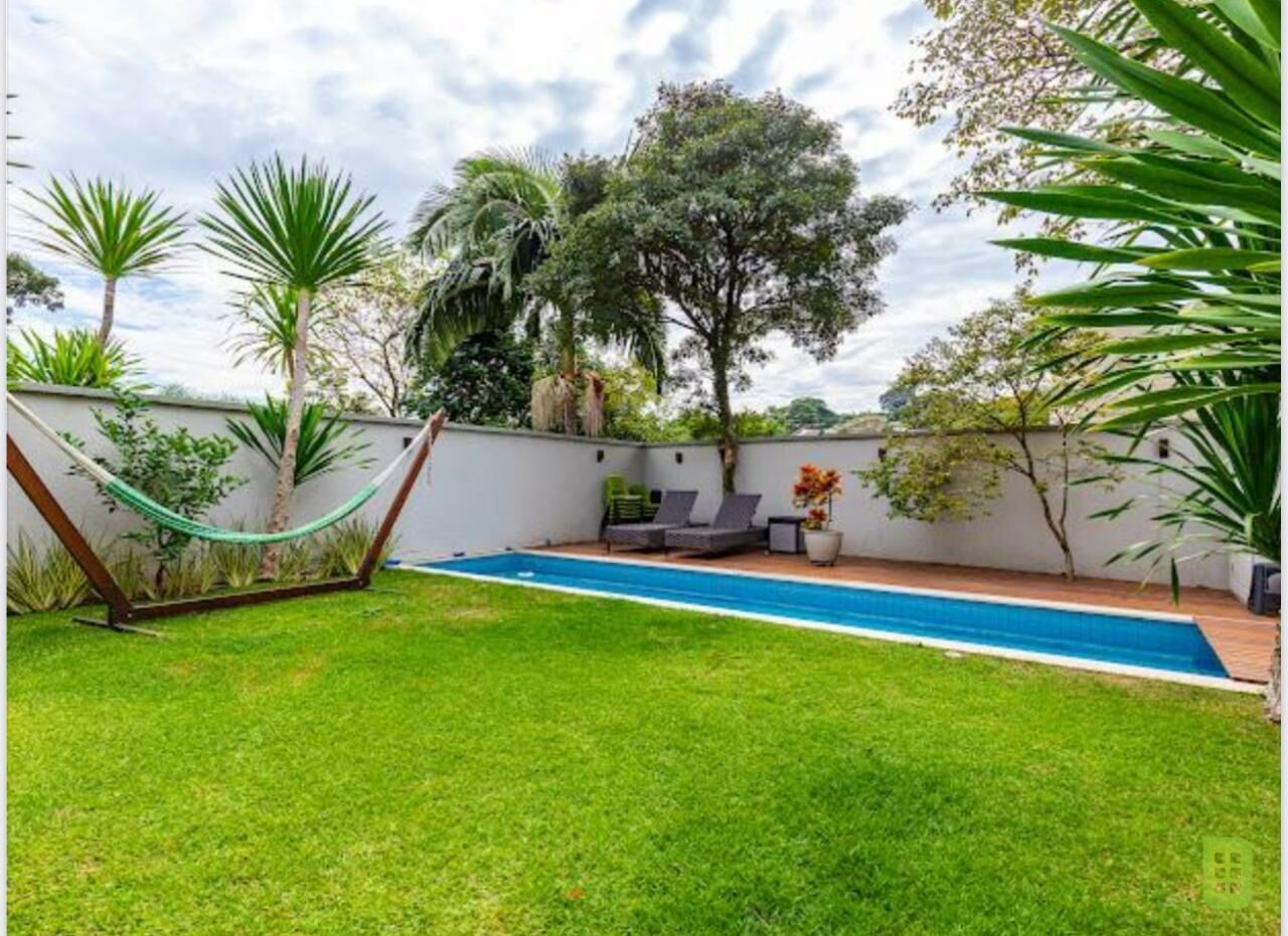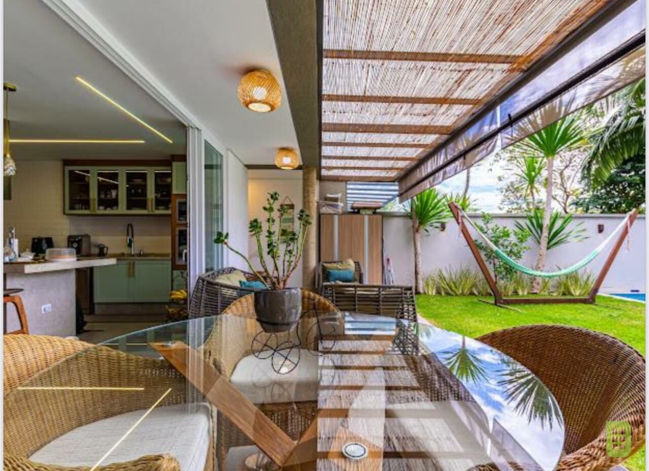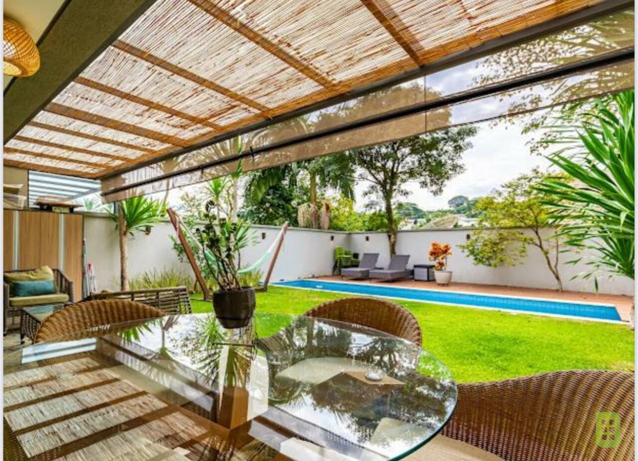 O destaque fica por conta da área externa que oferece um belo jardim, piscina e uma charmosa varanda gourmet, criando um ambiente acolhedor para momentos especiais.