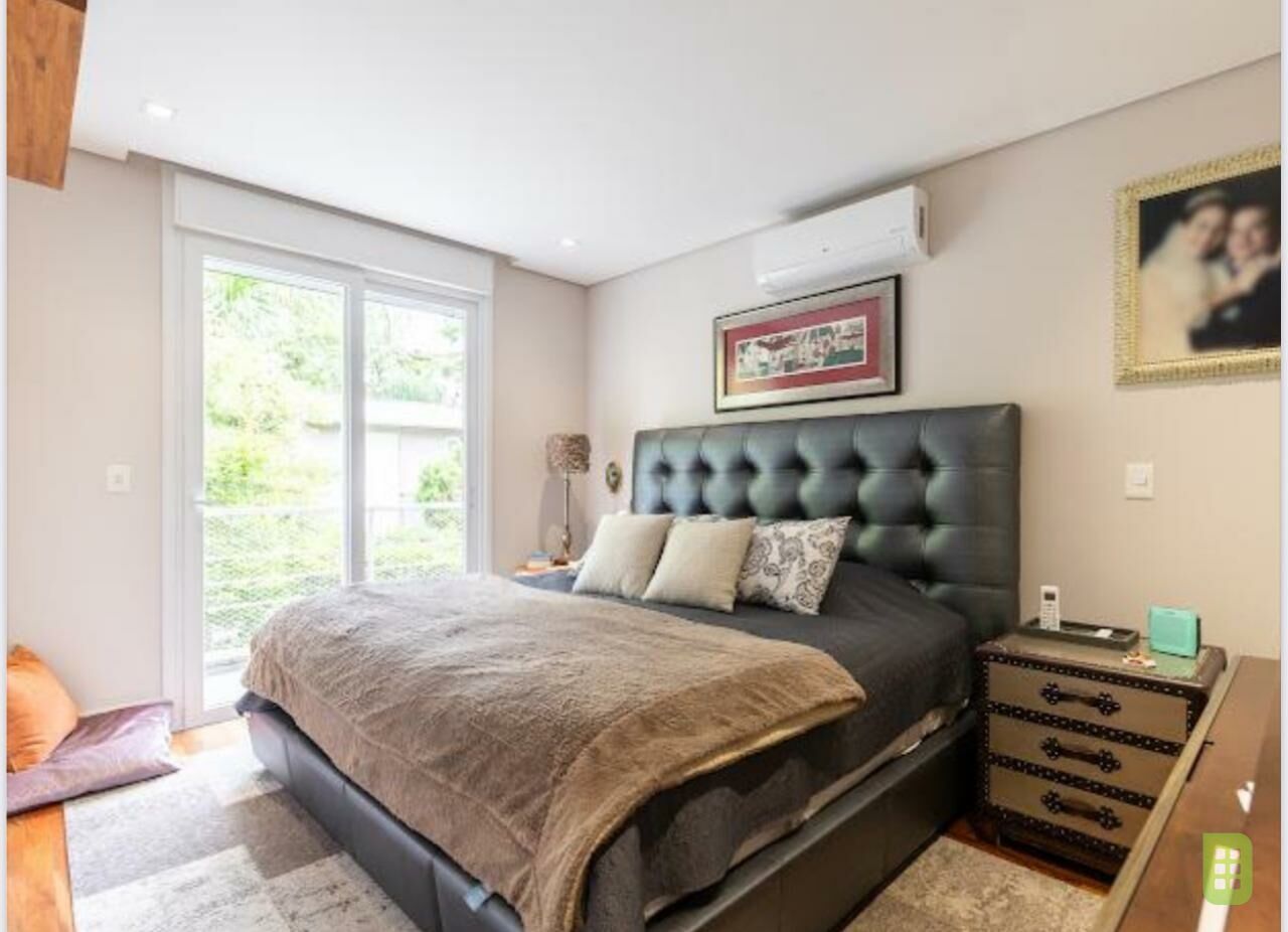 No piso superior, encontram-se quatro espaçosas suítes com varandas privativas, todas com marcenaria de alta qualidade e ar-condicionado, garantindo conforto e privacidade para toda a família.